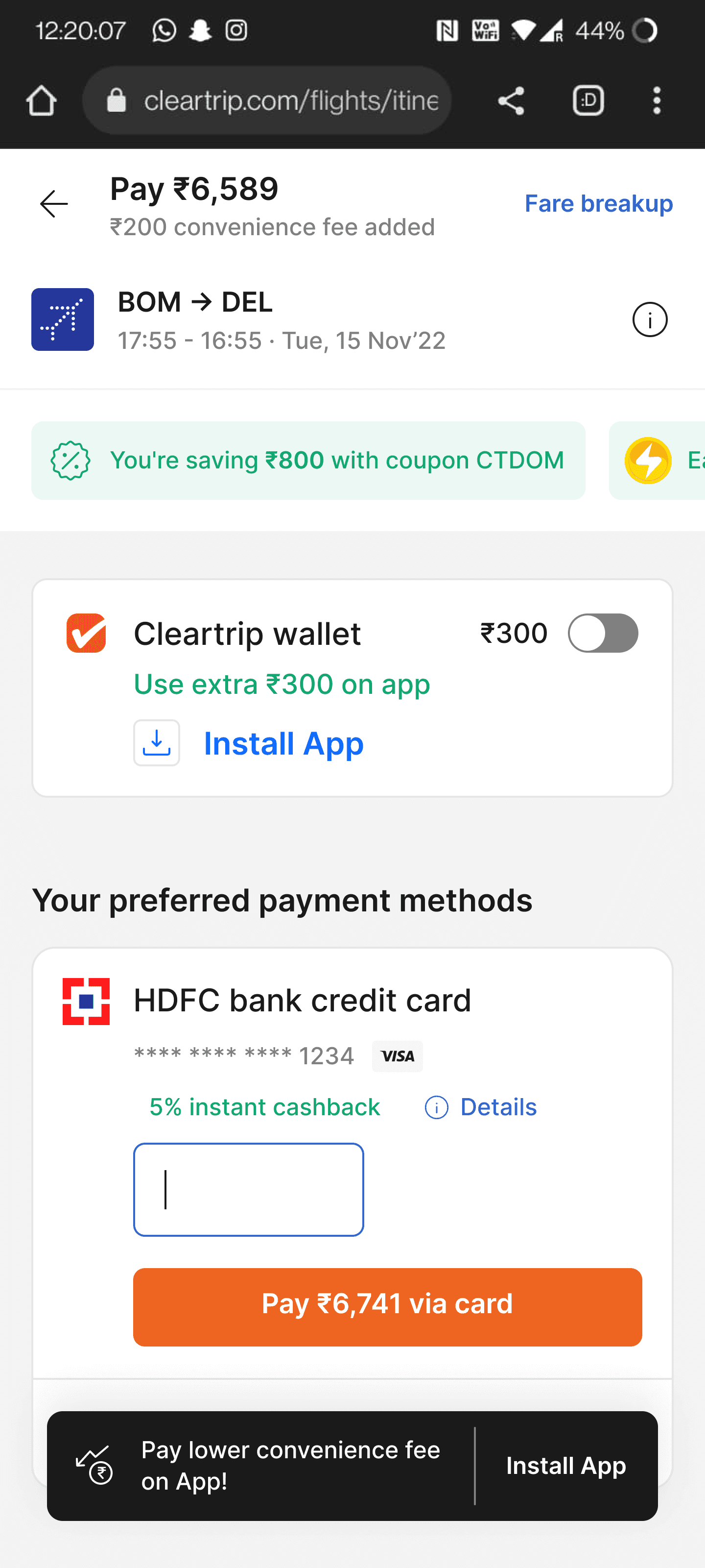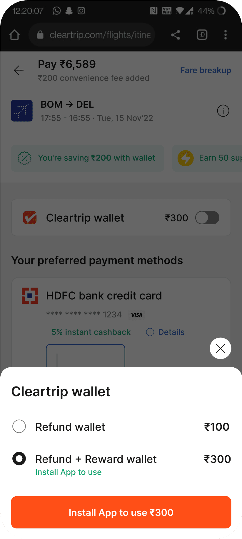 This page serves as the final review for all traveler and flight information, along with price details, before proceeding to the payment page. We’ve implemented multiple touchpoints to highlight the benefits of transitioning from the PWA to the app by downloading it. We experimented with various approaches to minimize friction and prevent user drop-off, aiming to create a sense of urgency and encourage app downloads.
