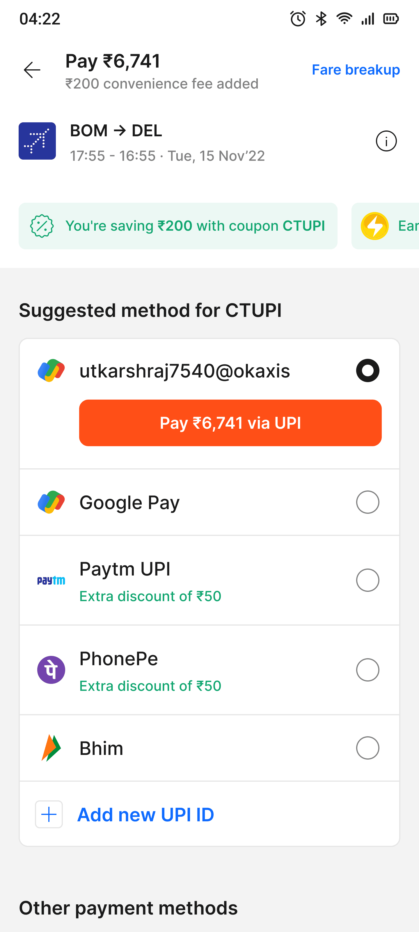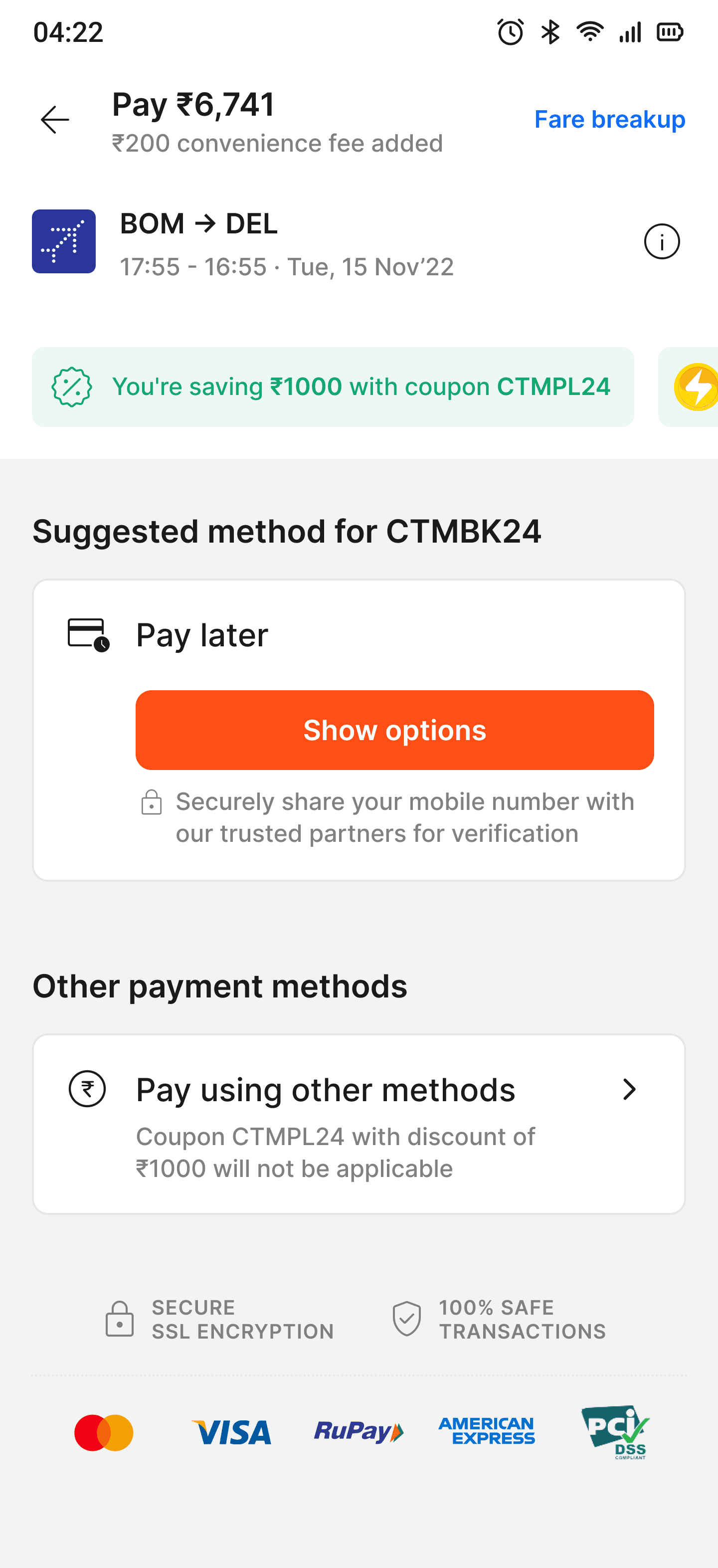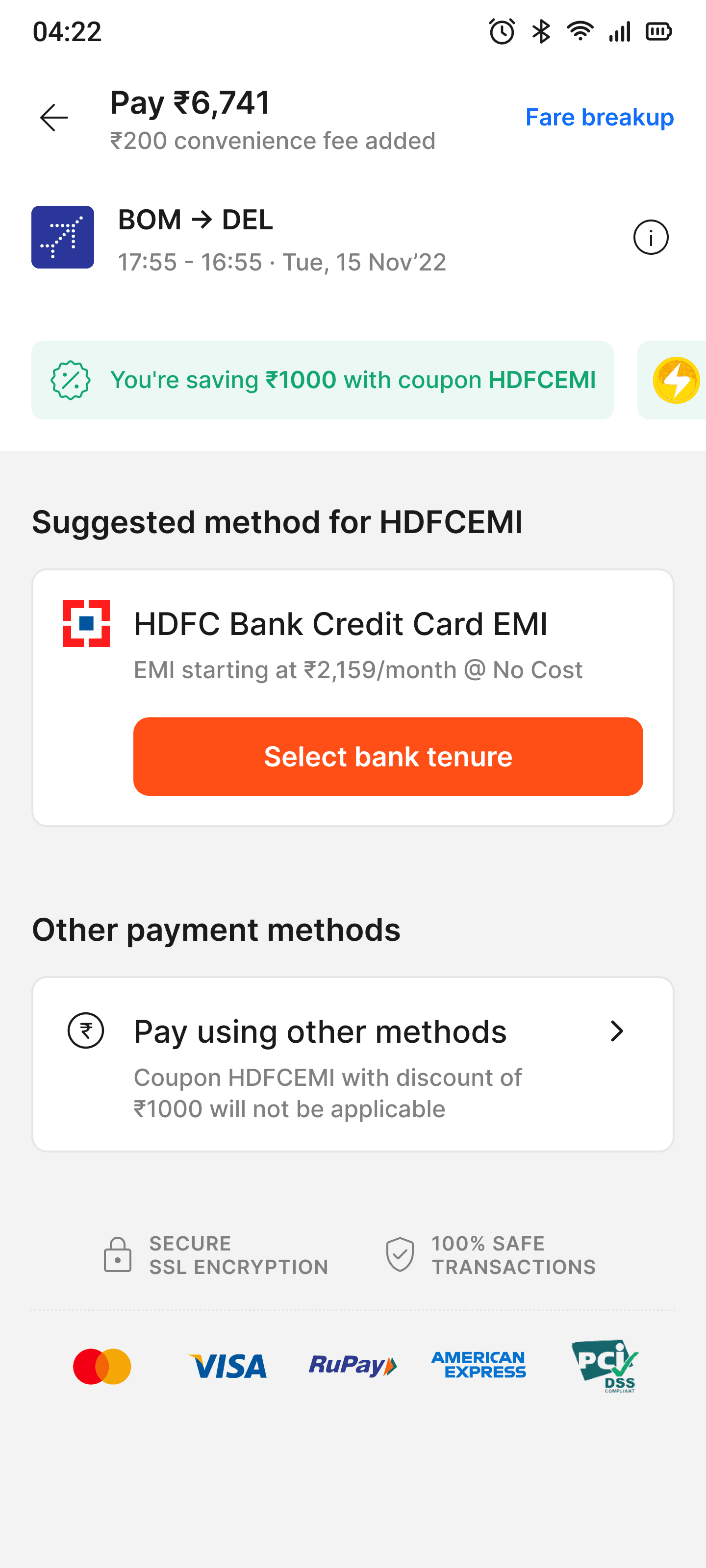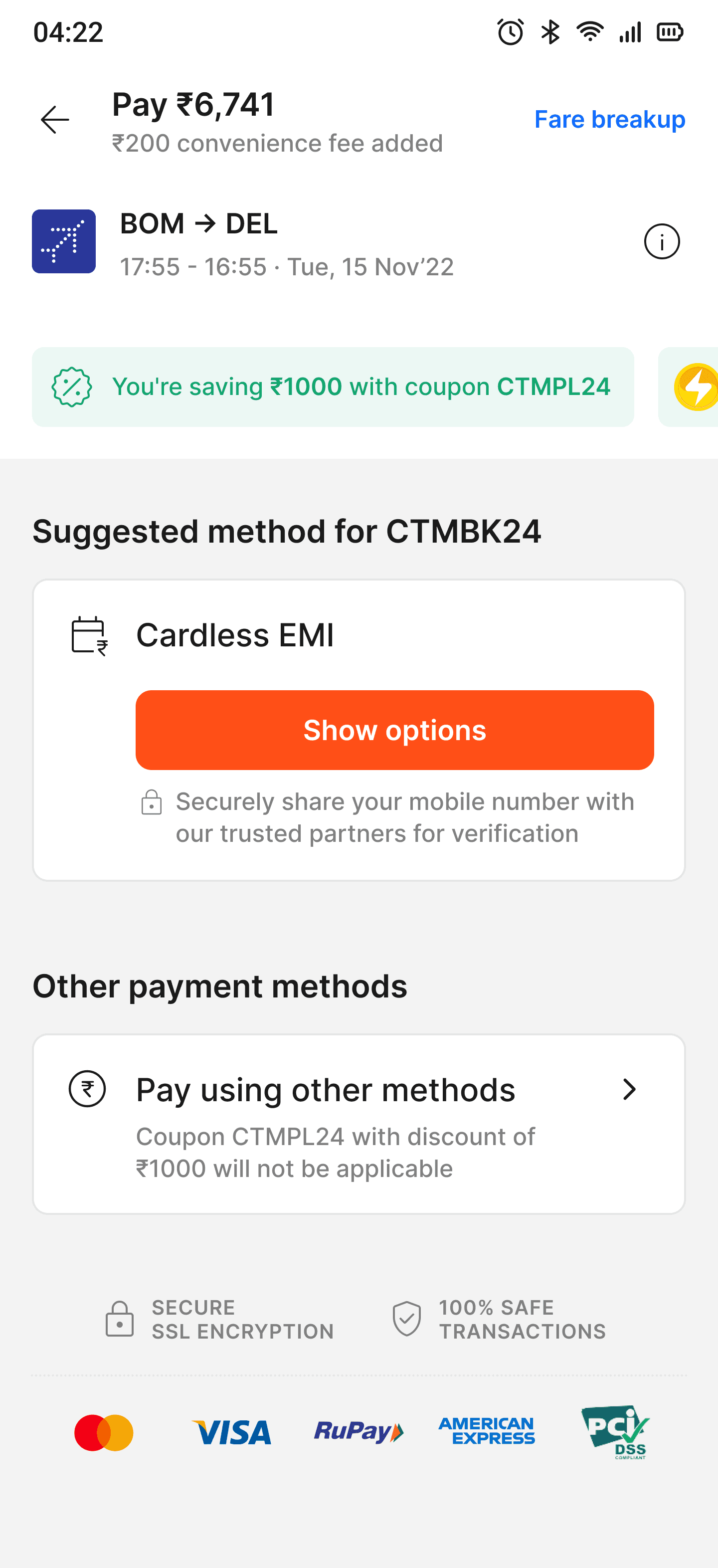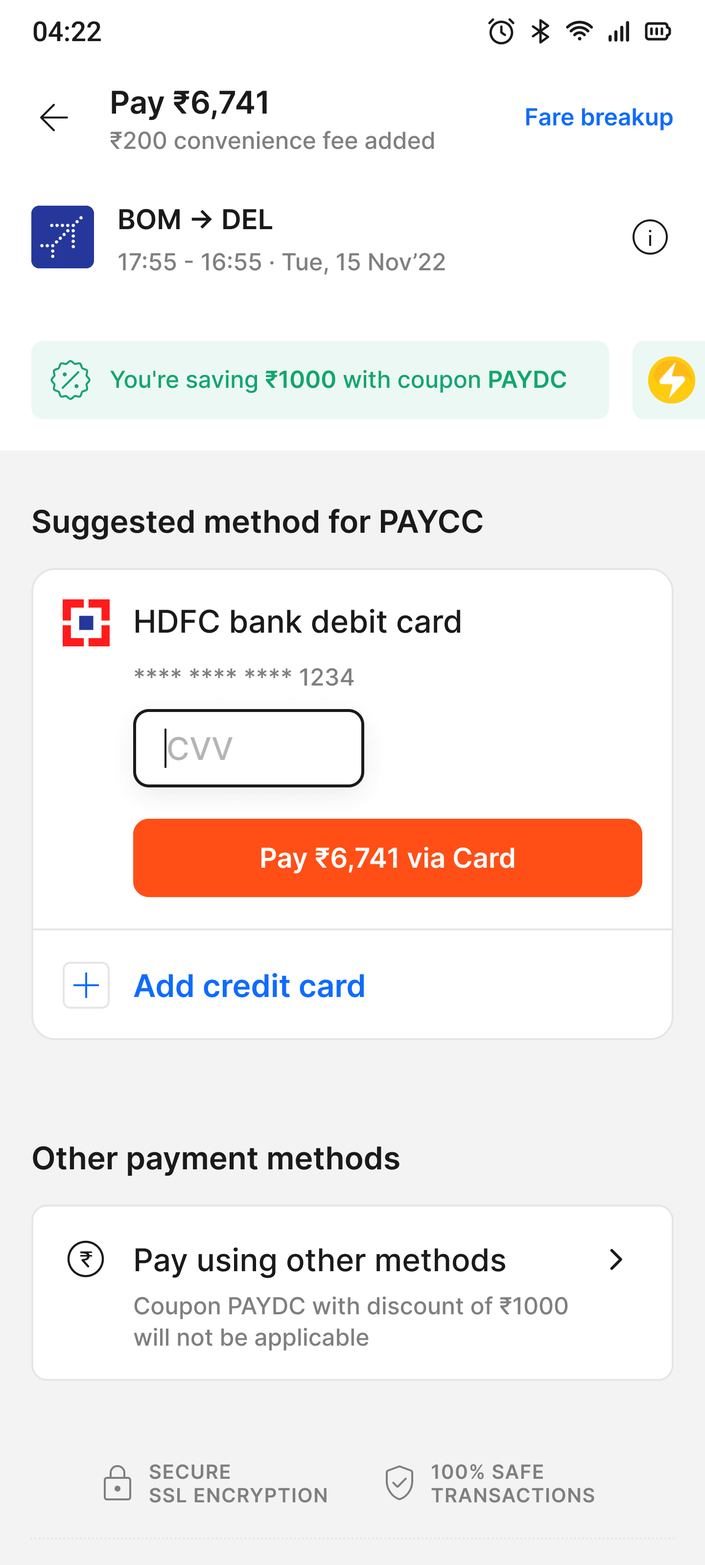 In our payment options journey, we meticulously mapped out the available modes to ensure a seamless experience for every user. Starting with Credit and Debit Cards, we covered all major networks like Visa, Mastercard, Amex, and Rupay, offering flexibility through a manually validated BIN list and an easy selection from top banks.