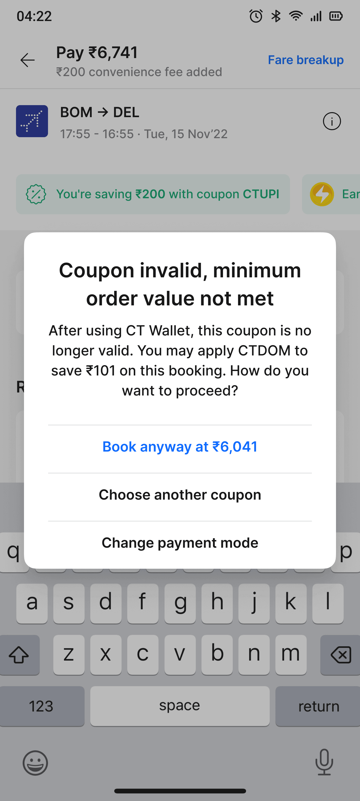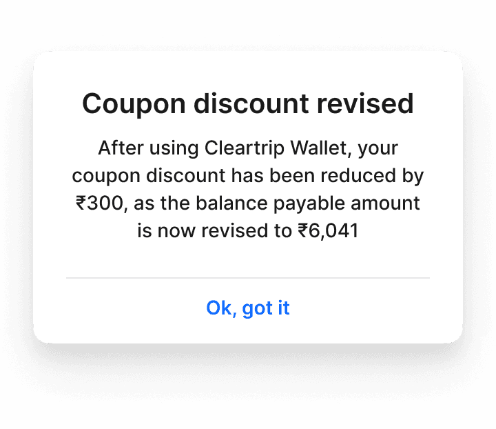 We revamped our payment and coupon system by defining clear payment restrictions, validating payment modes at checkout, and applying discounts accordingly. Redemption limits were set, and offers were configured to be valid at specific times. Custom success messages and descriptive error guidance enhanced the user experience. We displayed only eligible coupons, managed payment methods dynamically, and ensured accurate discount updates based on Cleartrip Wallet usage.